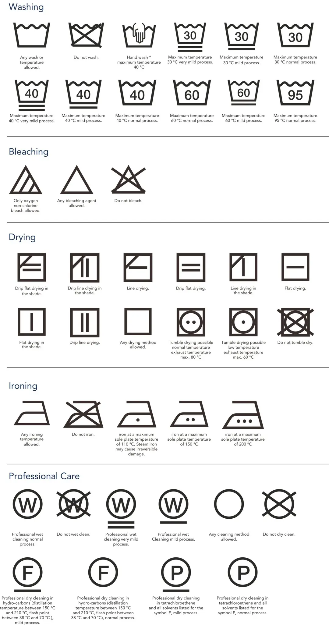 Etiketlerdeki bakım talimatlarını her dilde uzun uzun yazmak pratik değildi. Bu yüzden semboller öne çıktı: yıkama leğeni, üçgen, ütü, daire gibi ikonlar zamanla global bir dil haline geldi. 1960’lardan itibaren bu sembollerin uluslararası ölçekte yaygınlaşmasıyla birlikte “etiket okuma” da bir tür evrensel beceriye dönüştü.